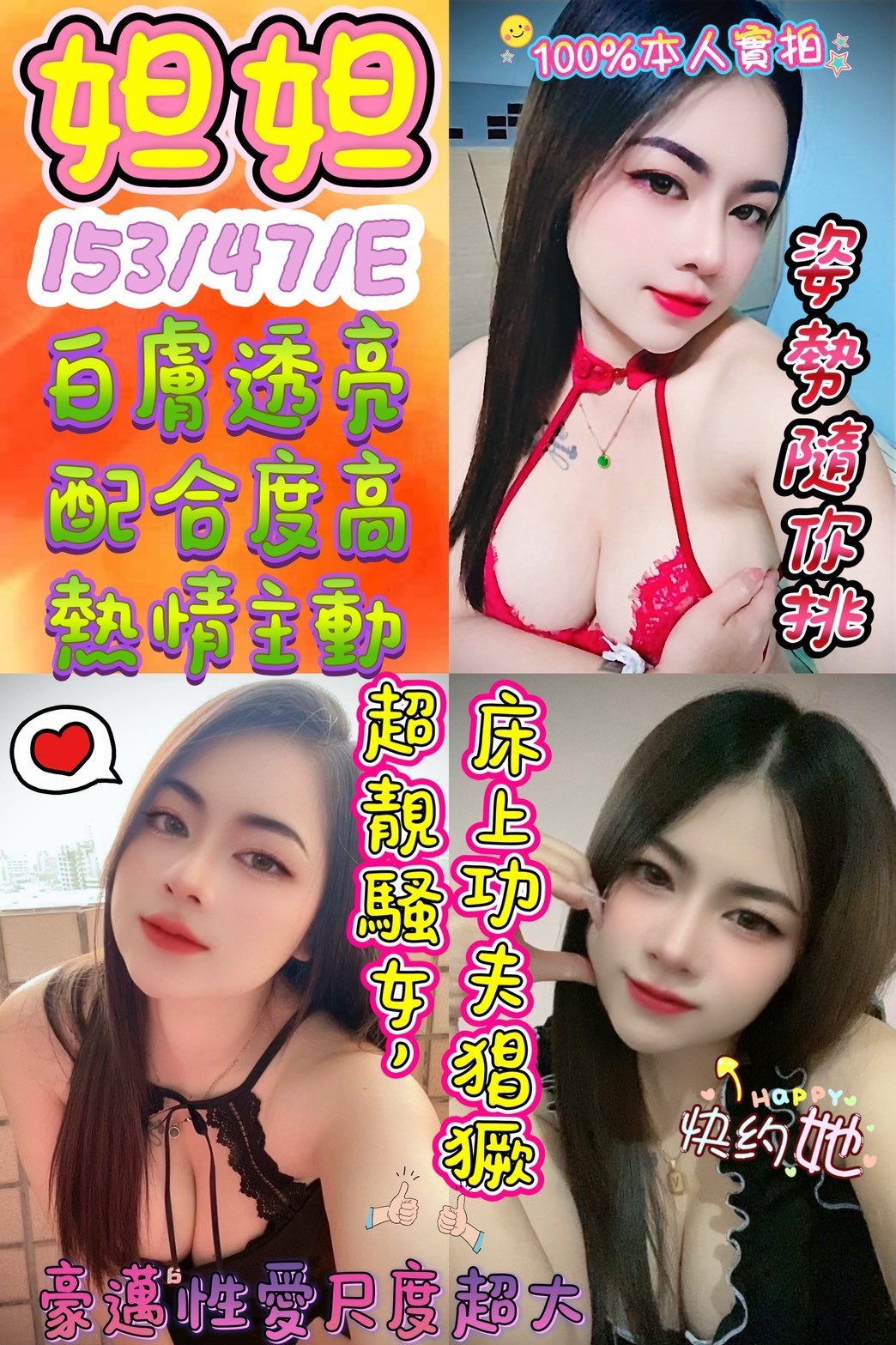 無套吹/共浴殘廢澡/親密KISS.激情舌吻(視個人衛生和妹妹現場感覺.自行開發)/按摩/奶炮/胸磨臉/六九/品鮑